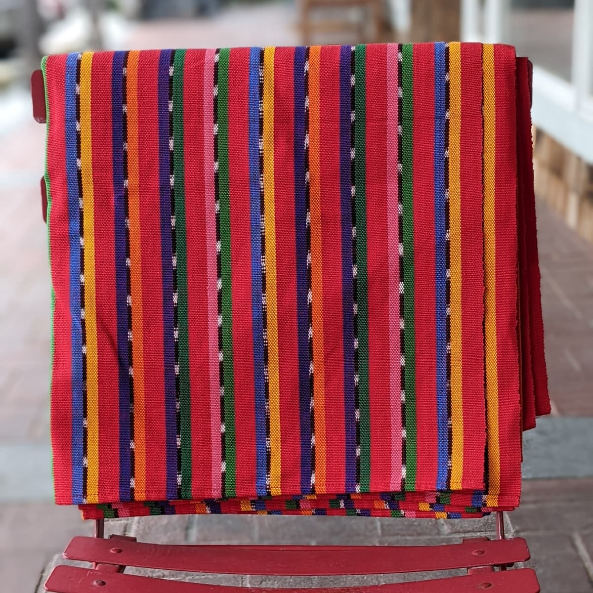 Elevate your dining experience with this exquisite Guatemalan Tablecloth featuring a handwoven design in vibrant blue stripes. Add a touch of fun and elegance to your table setting with this unique piece. 100% cotton. Cold water wash, no bleach, line dry.